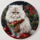 Inmitten einer Winterlandschaft genießt eine spielerische Katze einen schneesicheren Weihnachtsmorgen und verlasse im glitzernden Schnee bezaubernde Pfotendrucke. Ihre Freude und Neugier verleihen der bezaubernden Urlaubsszene Wärme und machen sie zu einem wahren Zauber.