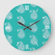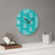 Persischer Fliesenpaisley - weiß auf Türkis Große Wanduhr