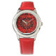 Kinderuhr aus Edelstahl mit rotem Lederarmband