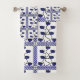 Persisches asiatisches Blumengeometrisches Muster Badetuch Set entworfen von Nisha Prabhu CuteHomeGifts. Blaue Blumen geometrische diagonale zeitgenössische horizontale Streifen Muster auf einem weißen Hintergrund. Genießen Sie den Wellness-Center in luxuriösem Ambiente mit diesem hübschen, persischen Set aus asiatischem Blumenmuster.