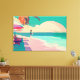 Person, die auf dem Aquamarinen und Peach Sandy Be Leinwanddruck