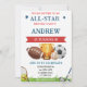Featuring an All Star design that blends the excitement of various sports, from basketball and soccer to baseball and more, this invitation sets the tone for a day filled with athletic fun and celebration. The vibrant colors and playful graphics make it an engaging and eye-catching choice for your special occasion.