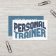 Eine mutige Fitness Trainer Visitenkarte, die "Personal Trainer" in Blautönen sagt. Sie können die Hintergrundfarben beliebig ändern.