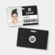 Black Business Foto ID Personalausweis Abzeichen Personenname Persönlich personalisieren Sie dieses Abzeichen mit dem "Custom Employee Name" mit Foto, Scan Bar Code und Firmenlogo, mit Personennamen, Beruf, optionalem Identitäts-Bar, inklusive Metallklammer. Ein Abzeichen mit Markenzeichen, das zur Identifizierung von Mitarbeitern, Besuchern oder Gästen nützlich ist. Ein einfaches Business-Design, links in Schwarz-Weiß-Farben, vollständig anpassbar in Vorder- und Rücken-Größen, serifenlos, einfache und moderne Schriftart und ein berufliches und klares Aussehen. Ein nützliches Werkzeug für Firmenveranstaltungen, Wiedersehen, Erneuerungen und Feiern. Erstellen Sie mehr Corporate Foto Abzeichen Identifizierungskarte in verschiedenen Farben für jede Kategorie, die Sie identifizieren müssen: Mitarbeiter, Besucher oder Gäste. Verfügbar mit oder ohne Lanyard, Metallklammer oder mit Retraktierbar. Keine Mindestbestellung.