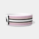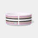 Weiße Keramik Katzenfutterschale mit vier Tonstreifen, Weiß und Schwarz als Grundlage, und jede koordinierende Farbe, die Sie bei der Option "Anpassen" wählen (innerhalb der personalize Option) erscheint in zwei Tönen .HAMbyWhiteGlove. Hier in der Farbe Mauve Pink dargestellt.