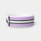 Weiße Keramik Katzenfutterschale mit vier Tonstreifen, Weiß und Schwarz als Grundlage, und jede koordinierende Farbe, die Sie bei der Option "Anpassen" wählen (innerhalb der personalize Option) erscheint in zwei Tönen .HAMbyWhiteGlove. Hier in einem Lavendel gezeigt.