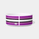 Weiße Keramik Katzenfutterschale mit vier Tonstreifen, Weiß und Schwarz als Grundlage, und jede koordinierende Farbe, die Sie bei der Option "Anpassen" wählen (innerhalb der personalize Option) erscheint in zwei Tönen .HAMbyWhiteGlove. Hier in einem hellen Rosa dargestellt.