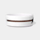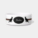White Keramik Katzenfutter Schüssel hat zwei Katzengrafiken auf jeder Seite des schwarzen Namens Platzhalter. Auf jeder Seite gibt es ein braunes Farbband, das durch ein knisterndes Kreuz-Design hindurch geht. Ein sehr weiblicher und reglicher Look in einer Katzenschale . Entworfen von HAMbyWhiteGlove.