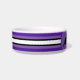 Weiße Keramik Katzenfutterschale mit vier Tonstreifen, Weiß und Schwarz als Grundlage, und jede koordinierende Farbe, die Sie bei der Option "Anpassen" wählen (innerhalb der personalize Option) erscheint in zwei Tönen .HAMbyWhiteGlove. Hier in einem lila.