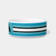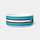 Weiße Keramik Katzenfutterschale mit vier Tonstreifen, Weiß und Schwarz als Grundlage, und jede koordinierende Farbe, die Sie bei der Option "Anpassen" wählen (innerhalb der personalize Option) erscheint in zwei Tönen .HAMbyWhiteGlove. Hier in einem aquamarinen.