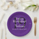Persönlich gestaltbare Papiertafel wird zum Geburtstag, dem Namen, dem Alter der Person und dem besonderen Wunsch gezeigt: "Lass, das sei ein tolles Jahr!" Designed by HAMbyWhiteGlove alias HAMbWG - Matching Becher, Servietten und andere Artikel werden separat verkauft. Lila dargestellt.