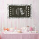Personalisiere: Willkommen auf meiner 60. Geburtstagsparty. Ein großes schwarzes Banner mit weißem Text und Vorlagen, um es Ihnen leicht zu machen, zu Ihren eigenen Worten zu wechseln. Sie können den gesamten Text mit den mitgelieferten Vorlagen personalisieren. Das Zeichen ist mit weißen Sternen und Hash-Linien bestickt. Das Ganze funktioniert gut mit einem schwarz-weißen, über den Bergen liegenden Geburtstagsthema.