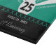 Ein trendiges und besonderes Geschenk, Souvenir, Geschenk oder Party, das für ein Business-Umfeld unverzichtbar ist, um einen Mitarbeiter zum 25-jährigen Mitarbeiterjubiläum zu beglückwünschen. Schwarzer und grüner Hintergrund mit weißen Strahlen, die wichtige Merkmale eines guten Mitarbeiters hervorheben.