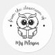 "aus dem Klassenzimmer der Lehrer" Aufkleber mit einer niedlichen Eule, die ein Buch in der Mitte liest. Personalisieren Sie mit dem Namen, um es zu einem großen Lehrer Wertschätzung Geschenk zu machen.
