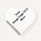 Stil: Herz geformt Spiral Bound Notebook Zubehör, während Sie mit diesen handgefertigten Spiral-Notebooks organisieren. Die vorderen und hinteren Deckblätter sind mit Deinen Bildern und Texten anpassbar, und die Notizblock-Deckblätter sind laminiert, um Haltbarkeit zu gewährleisten. Wähle aus 3 verschiedenen Notizblock-Stilen, 6 verschiedenen Spiralfarben und 8 Seiten-Design-Optionen, um Deinen einzigartigen Notizblock noch heute zuerstellen. Abmessungen: 8" l x 8" w Seitenanzahl: 60 Blätter, 120 Seiten 60 lb. Hartpapier Vorder- und Rückseite Laminiert, schlicht weiß innen Auswahl von 6 Farben für die Spirale Wahl von 2 Designs für die CPSIA-konformen Seiten Geeignet für Alter ab 4 Jahren