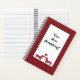 Personalisieren/anpassen Sie die Nachricht auf der Vorderseite dieses whimsical, custom, spiralnell Notebook. Verlass den Text so, wie er ist, oder schreibe eine besondere Nachricht an jemanden, und gib ihn als Geschenk. Oder schreiben Sie jemandes Namen oder so etwas Einfaches wie "Journal". Egal was, das ist ein lustiges Notizbuch für jeden, der es empfangen oder benutzen kann. Es verfügt über zwei rote Dackeln mit Cartoon, die sich gegenüberstehen. Ein Herz ist in der Mitte über ihren Köpfen. Die Hunde sind durch ein weißes Rechteck mit einem schrägen, gestrichelten, schwarzen Rahmen gerahmt, der dazu beiträgt, das Design und Ihre Nachricht vor dem roten Hintergrund zu stellen.