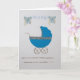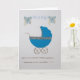 Persönliche, handgeschnittene blaue Babytrommel mit goldener Farbe für die Geburt oder Babydusche eines Babys auf der Grußkarte. *Alle Dinge, die Sie auf den Produkten sehen, sind handgefertigt, aber Sie müssen wissen, dass Sie ein Foto bekommen!