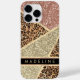 Personalisierte Imitate Rose Gold, Rosa Rosa Glitzer. Gemischte Stücke mit Leopardenleopardenhaut und vergoldeten Glitzer- und Kupfertrimmbalken. Diagonal gestreifte Linien und Patches Muster gestalten Farbblock. Luxus und einzigartige Geometrie. Passen Sie Ihren Namen an, oder Monogramm, Initial, oder Text für ein schicke, gürtnisch stilvolles Design. Moderner und trendiger geometrischer Stil.