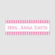 Stilvoll einfach zu lesen mit rosa und weiß Streifen Namensschild. Das Rosa kann auf jede beliebige Farbe umgeschaltet werden. Text kann auf jeden Namen und Titel personalisiert werden. Der Text ist ebenfalls abnehmbar. Stripmuster können auch entfernt werden, wenn Sie ein fest gefärbtes Namensschild in Ihrer eigenen Farbwahl bevorzugen.