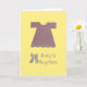 Handgeschnittenes hellrosa Kleid für Taufe für Mädchen mit Perlen, rosa und weißem Bogen und hellgelbem Hintergrund auf der Grußkarte. *Alle Dinge, die Sie auf den Produkten sehen, sind handgefertigt, aber Sie müssen wissen, dass Sie ein Foto bekommen!