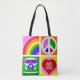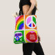 Personalisieren Sie Pop Art Camper Van Life Tote Tasche; Frieden und Liebe und Freiheit. Personalisieren Sie mit Ihrem eigenen Text innerhalb des Geländes.