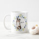 Niedliche Tasse für die stolze Hundemutter. Der Blumenkranz in Aquarellfarben ist eine federblaue Blume und eine Kombination aus grünem Blattwerk. Die Australian Shepherd porträtiert Aquarellbilder mit benutzerdefiniertem Text und fügt den Welpennamen oder Ihren eigenen hinzu. Die perfekte Tasse für einen Hundefreund.