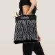 Personalisieren Sie diese schwarz und grau-silber Zebra Print Women's Tote Bag, Hand Bag mit Text auf der Vorderseite und andere oder den gleichen Text auf der Rückseite. Großartige Geschenke für Ihre Brautmädchen oder Hochzeitsfeier. Jede Frau würde diese Tasche als Geschenk Liebe.