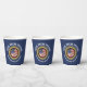 Maßgeschneiderte 2024 SOLAR ECLIPSE USA Paper Cups in BLAUE, mit CUSTOMIZABLE TEXT, um die Total Solar Eclipse über Continental USA, Kanada und Mexiko im April 2024 zu feiern. Der CUSTOMIZABLE-TEXT lautet TOTAL SOLAR ECLIPSE und [FAMILIENNAME] Watch Party. Sie können das obere kurvige Textfeld bei Bedarf für einen längeren Satz verwenden (und den unten gebogenen Text löschen). Das Design zeigt eine Sonnenfinsternis mit Goldeffekt 2024 in der Mitte und die US-Flagge dahinter. Kaufen Sie diese USA Sonnenfinsternis Papier Cups für die ganze Familie oder für Ihre Party Gäste! Das Ganze wird es wert sein! Passend zu den USA Party-Lieferungen verfügbar.