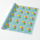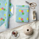 Die Malerei von drei Ballons in Gelb, Rot und Grün, in einem blauen Himmel, sind in einem Muster gedruckt, mit einem Platzhalter für den Namen des Geburtstags, wird auf Packpapier gedruckt. Passen Sie den Namen auf dem Vorlagenformular einfach an.