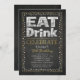 Personalisierte Erwachsene Einladungen zur 70. Geburtstagsparty. Coolen Schwarz, Weiß und Imitat Gold extravaganten Geburtstag lädt ein. Auf einem Chalkboard-Hintergrund können Sie kreative, elegante Topographien sehen. Sie können das Geburtstagsalter und Details ändern. Sie können diese Vorlagen auch für andere Veranstaltungen verwenden. Entworfen von Superdazzle.com