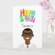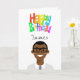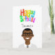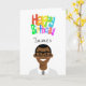 Niedliche Illustration eines männlichen Charakters mit individualisierbarem Text innen und außen und farbenfroher Geburtstagstext auf der Vorderseite. Alle Elemente können verschoben, verändert und alle Farben geändert werden.