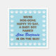Diese Papierservietten zeigen einen blauen Hintergrund mit weißen Pfotendrucken und der Text "Wir sind Hunde gegangen glückt zu sagen, ein kleiner Junge namens [Babyname] ist unterwegs! Diese Servietten sind großartig zum Thema Pfotendruck, Hundeschema, Welpenthema oder zum Thema Tier.
