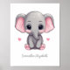Ein zauberhafter rosa und grauer Elefant für das Kinderzimmer Ihres kleinen. Personalisieren Sie es mit einem Namen oder Text. Erhältlich in vielen Größen und kann gerahmt sein.