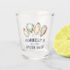 Dieses coole Küsten-Shotglas für Ihr Strandhaus, Ihren Innenhof oder die Salzwasser-Oyster und Perlmuttbilder. Personalisieren Sie mit einem Familiennamen und einem Jahr, das sich am unteren Ende befindet, zusammen mit "Oyster Shack" oder Ihrer Personalisierung.