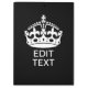 Ein Kronensymbol im Stil Behalten Calm auf einem soliden schwarzen Dekor, das Sie nach Belieben mit Text anpassen können. Verwenden Sie den Link "Diesen Designer Gefragt", um uns mit Ihren speziellen Designanfragen oder für Hilfe bei Ihren Anpassungsbedürfnissen zu kontaktieren.