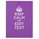 Ein personalisiertes, lila Lila, Ruhe bewahren und Sprichwort im Stil Carry On auf einem individuellen Geschenk. Humorvoll oder skurril versuchen Sie Ihre kreativen Worte auf den zwei bearbeitbaren Textzeilen. Vergessen Sie nicht, HAUPTSTÄDTE für beste Ergebnisse zu verwenden. Verwenden Sie den Link "Diesen Designer Gefragt", um uns mit Ihren speziellen Designanfragen oder für Hilfe bei Ihren Anpassungsbedürfnissen zu kontaktieren.