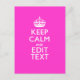 Personalisiert BEHALTEN CALM und Text lebhaft rosa Postkarte