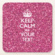 Personalisiert BEHALTEN CALM und Text rosa Rose Rechteckiger Pappuntersetzer
