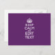 Personalisiert BEHALTEN KALM Ihres Textes auf Lila Postkarte