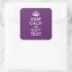 Personalisiert BEHALTEN KALM Ihres Textes auf Lila Quadratischer Aufkleber