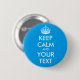 Personalisiert BEHALTEN Sie RUHE und IHREN TEXT - blauen Hintergrundfarbe- und weißewortfarbrunden Knopf
