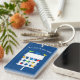 Schaffen Sie ein personalisiertes Geschenk für Ihren Lieblingsvogelliebhaber. Dieser Schlüsselanhänger trägt seinen Namen in weißer Schrift über der Abbildung eines Vintagen Vogelhotels oder Vogelkondo-Vogelhaus mit einer Herde von Vögeln in lebhaften Farben, das ganze Set vor marinebasischem Hintergrund. Fügen Sie einfach Ihren Namen oder einen anderen Text hinzu, um einen lustigen und einzigartigen Schlüsselanhänger zu schaffen.