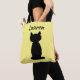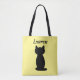 Fügen Sie dieser niedlichen Black Cat einen Namen auf einer Tote-Tasche hinzu.