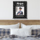 Moderne, schwarz umhüllte Leinwand-Wandkunst wird Ihren Absolventen für die nächsten Jahre präsentieren. Design bietet ein quadratisches Foto des Abschlusses in Weiß mit einfachem und klassischem Vornamen, Klassenjahr und Schulnamen, die personalisiert werden können. Enthält eine subtile Sternexplosion. Die schwarze Hintergrundfarbe kann so geändert werden, dass sie sich mit den Farben der Schule oder des Fotos abstimmt.