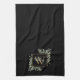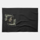 Elegante Aquarell-Blätter florale Monogramm-Namen Küchentuch mit einem goldenen Monogramm-Initial auf schwarzem Hintergrund mit Ihrem Namen Set in einem stilvollen weißen Skript. Entwickelt von Thisisnotme©