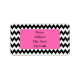 Personalisiertes Zickzack Zickzack-Muster in Schwarz-Weiß. In der Mitte befindet sich ein heißrosa Band, wo Sie Ihren eigenen Text hinzufügen können.