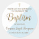 Der moderne und elegante Babytaufkleber in diagonal blauer Form ist leicht zu personalisieren. Mit einem Print Gold Cross. Benutzen Sie diesen Aufkleber für Geschenke, Geschenke, für die Taufgäste Ihres Kindes.