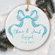 Personalisiert Blue Coquette Bow Verlobt Keramik Ornament