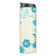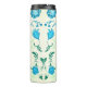 Blaue Blumen schmücken einen cremefarbenen Hintergrund und tragen ihren Namen im gleichen Blau.