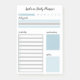 Dieser moderne Tagesplaner in Blau und Grau bietet in schwarzer Kalligrafie einen eigenen Titel mit leeren Vorlagen für Datum, Tagesziele, Listen, Notizen und motivierend Zitate. Sie können Text, Schriftart und Farbstile bearbeiten, indem Sie auf Anpassen klicken und dann im Entwurfswerkzeug bearbeiten klicken. Nutzen Sie diesen Planer, um organisierte und konzentrierte Projekte bleibe, die Produktivität zu steigern und Ihre täglichen Ziele zu verwirklichen. Ideal für Studierende, Eltern mit bleibe-at-Zuhause und Kleinunternehmer.